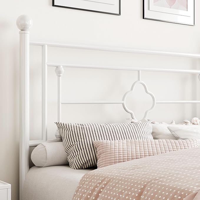 SHA CERLIN 14 Inches Full Size Metal Platform Bed Frame/Vintage Iron-Art Headboard and Footboard/Mattress Foundation for Storage/No Box Spring Needed/Noise-Free/Easy Assembly/White