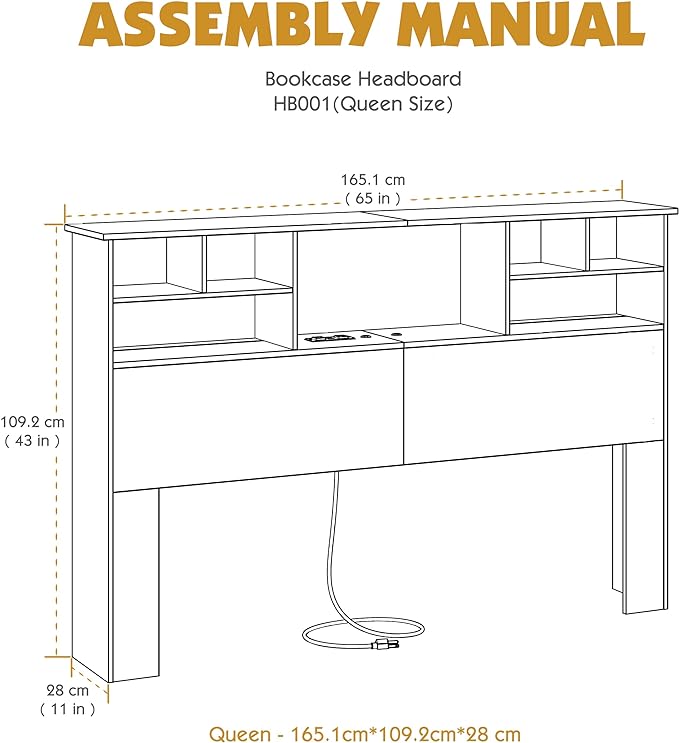 - Built-in Charging Station-Queen headboard comes with 2 built-in standard AC power outlets and 2 USB ports, allowing you to flexibly charge your mobile phones, tablets, headphones, book lights and other electronic devices while relaxing or working.