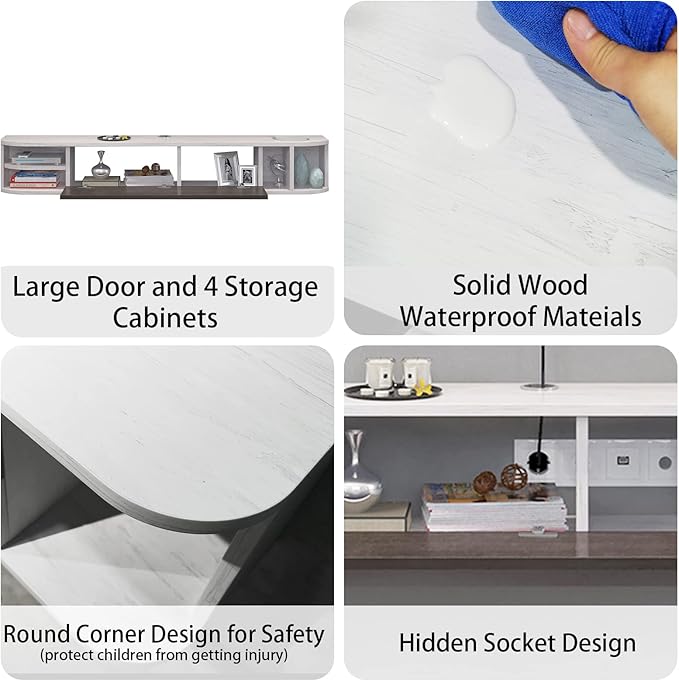 - 【Round Corners & Minimalist Design】The rounded corners design of our floating tv shelves not only adds a modern touch but also reduces the risk of accidents, especially in households with children.Designed with a modern aesthetic in mind, our wall tv stand shelf adds a touch of sophistication to your living room. The sleek and minimalist design, along with the round corners, creates a contemporary look that complements any decor style.