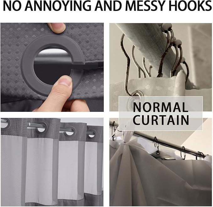 - 【No Hook Shower Curtain Set】: Install in 20 seconds without the hassle of annoying and messy hooks, and no need to remove the rod!