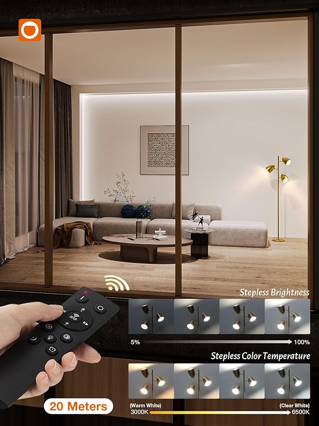 - Remote Control: The lamp comes with a remote that allows you to control it from a distance of up to 20 meters. You don't need to leave your comfortable bed. You can change the color temperatures from 3000 to 6000K, and it can also adjust the brightness from 1 to 100%. What a convenient feature!