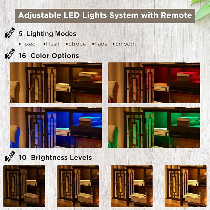 - Distinctive Allure: This 3D fireplace TV stand boasts a distinctive raised shape and intricately crafted 3-sided hollowed-out glass doors. The rustic oak finish faithfully restored the original wood's natural texture, flawlessly blending modern rustic with vintage farmhouse charm. Its elegant and distinctive appearance effortlessly captures attention from any corner of the room and is easy to complement with various furniture and decor styles.