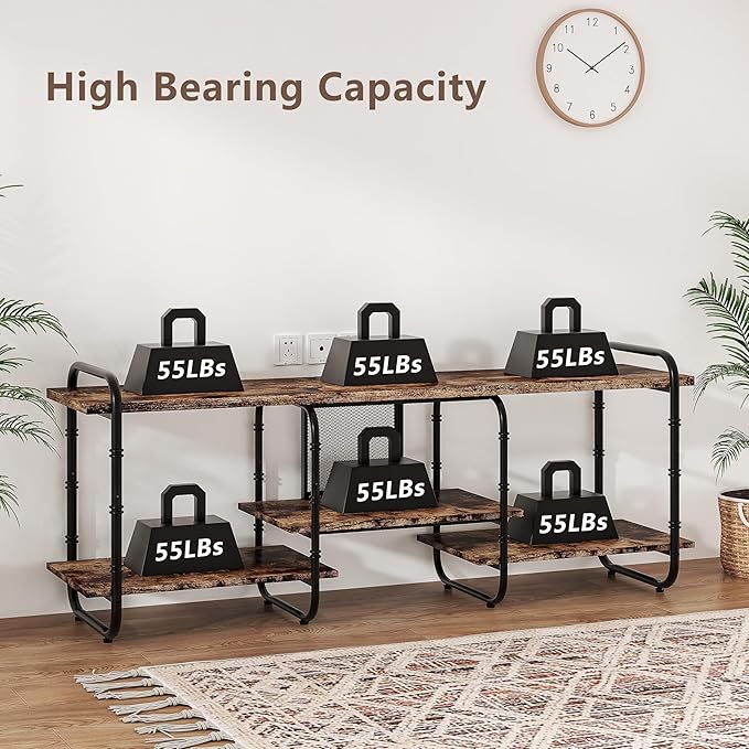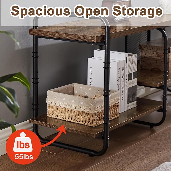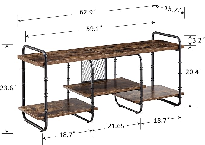 - 🎮 [Lean Design] This industrial TV console table gets rid of fussy design and excessive decoration, seeking as little design as possible. The console table has two colors (brown and grey) and three size (55/63/71 inches) for you, which fits the TV range up to (55/65/75 inches).