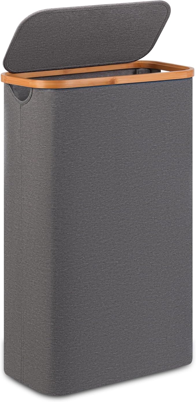 Slim Laundry Basket,60L Laundry Hamper with Lid, Tall Hamper for Laundry,Dirty Cloth Hamper with Bamboo Handle for Toys,Towels, Clothes Organizing,Grey