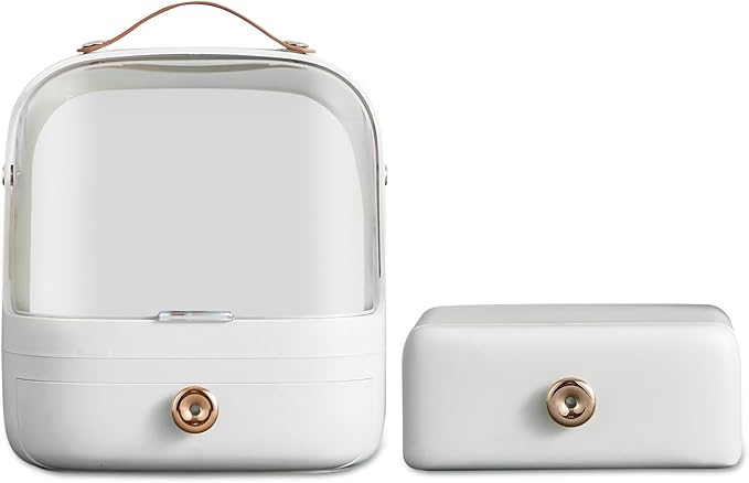 Ergocar Make Up Case Dustproof Cosmetics Skin Care Products Cosmetic Storage Box, Multi-Function Jewelry Organizer Case - White + Drawer