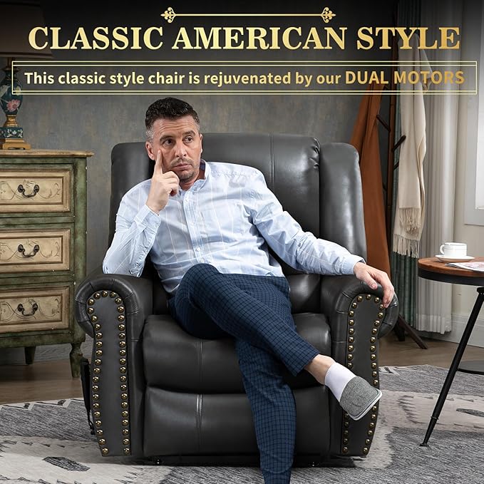 - Quality & Comfortable: The power lift recliner features soft, breathable leather upholstery that is high-end and gorgeous. The overstuffed sponge padding gives your full body a comfortable sense of wrapping. The sturdy wooden frame and durable steel base ensure that the chair can hold up to 380 pounds of weight and provide long-term use.