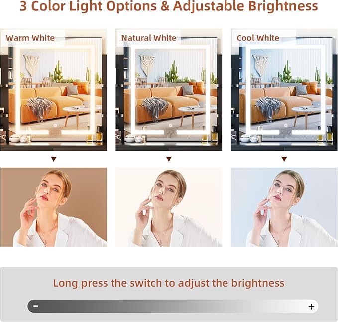 - Customize Your Makeup: Touch-sensitive switch lets you choose from 3 light colors and adjust brightness for perfect lighting every time.