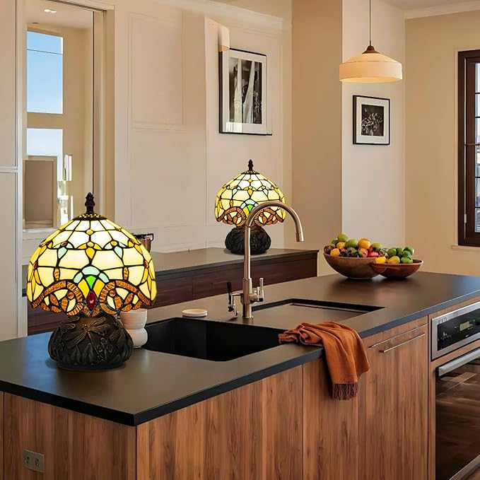 - 【 Small Stained Glass Lamp】This Tiffany lamp measures 8 inches in width and 11 inches in height. The lampshade is made of genuine stained glass, handcrafted with vibrant colors. The base is constructed from durable resin, ensuring sturdiness and reliable stability.