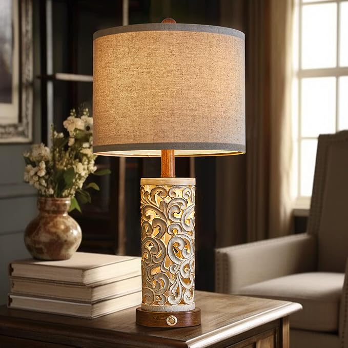 - Eye-Caring Farmhouse Table Lamps for Living room: The linen fabric lamp shade and the 3-way dimmable nightlight makes the glow softer so it can protect our eyes. Table lamp set is suitable for reading or working. I believe this pair of antique and unique table lamps will be the best gift for your family and friends!(Please note that the shade needs to be assembled)