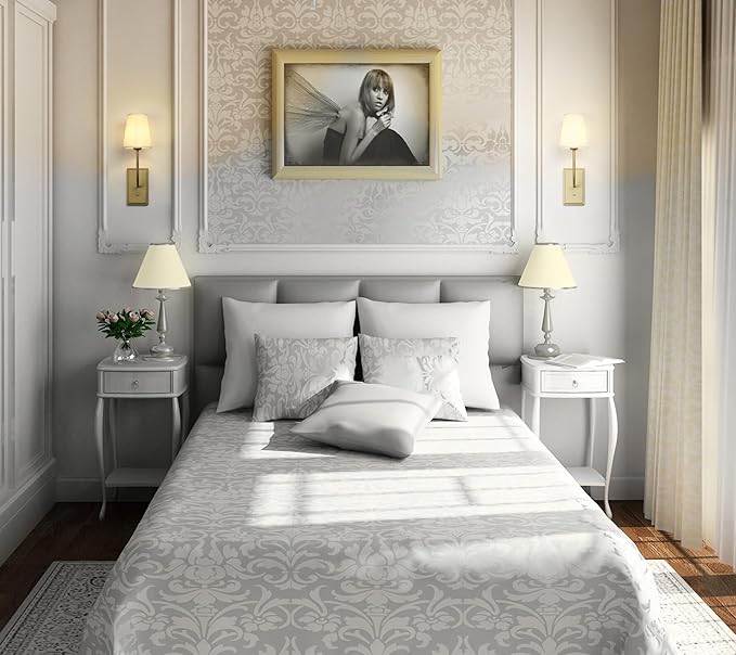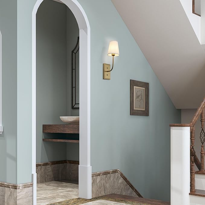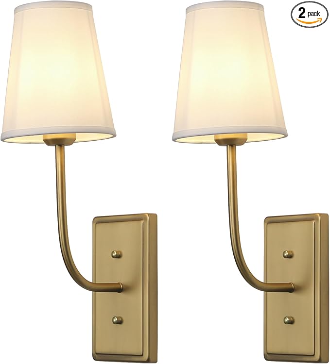 Farmhouse Brass Wall Sconce 1-Light, Linen Fabric Shade Wall Lamp Hardwired Indoor Wall Light for Bedroom Living Room Vanity Bathroom (White Cloth 2-Pack)