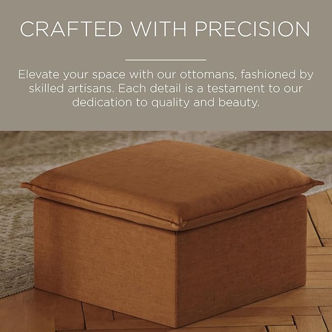 Maven Lane Claude Large Square Rustic Upholstered Ottoman, Cushioned Footrest for Living Room Couch, Chair, or Dorm Room in Clay Fabric Upholstery