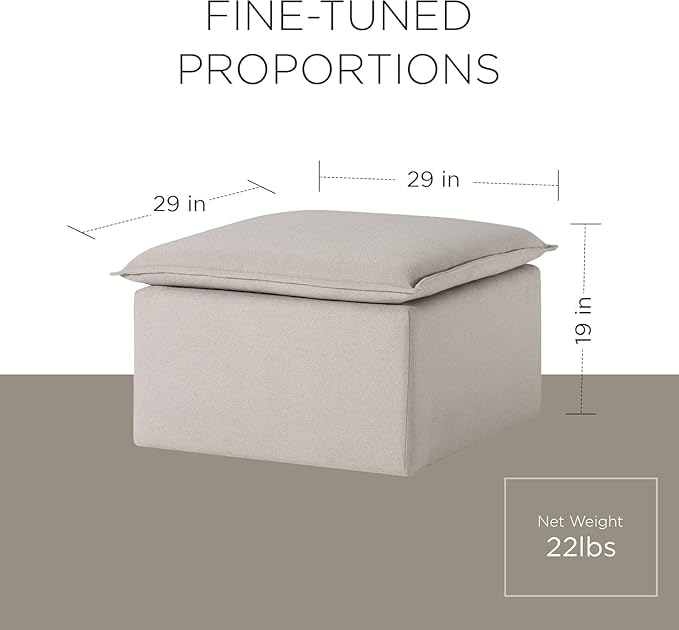 - PREMIUM FABRIC UPHOLSTERY: You?ll love the premium fabric and luxe feel of this upholstered ottoman. Relish in the comfort of fabric upholstery in a natural hue. Upholstered from top to bottom to keep your space and color palette neutral and versatile.