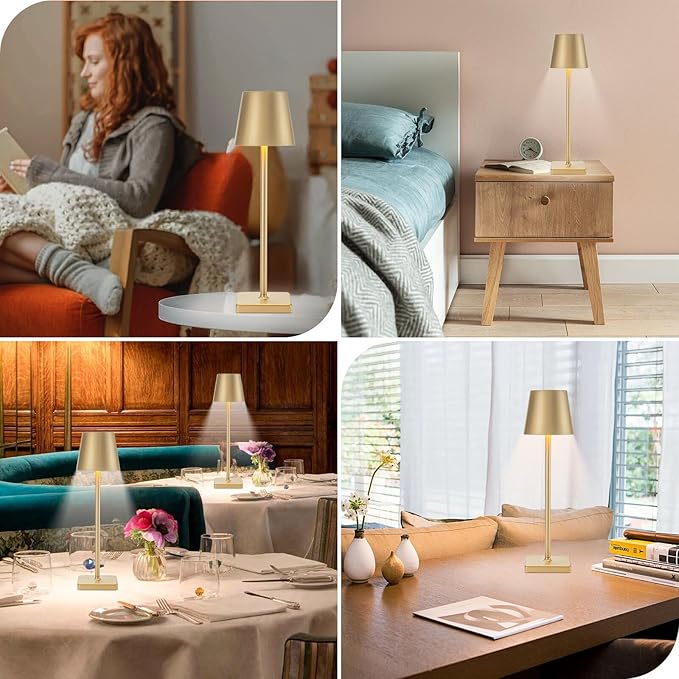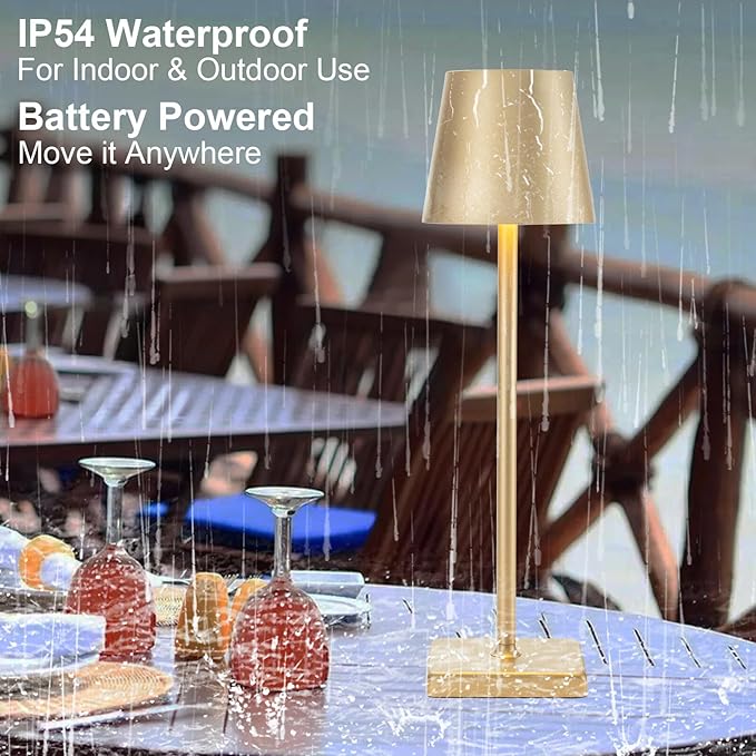 2 Pack Rechargeable Cordless Table Lamps, 5200mAh Battery Touch Table Light, Aluminum Shell Stepless Dimmable Portable LED Desk Lamp for Dinner/Restaurant/Outdoor Gold