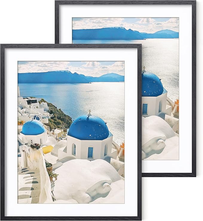 Axeman 20x30 Picture Frame with Mat for 16x24, Solid Oak Wood Poster Frame with Tempered Glass, Wooden 20''x30'' Minimalist Photo Frame with Wall Hooks Puzzle Frame, Set of 2, Black