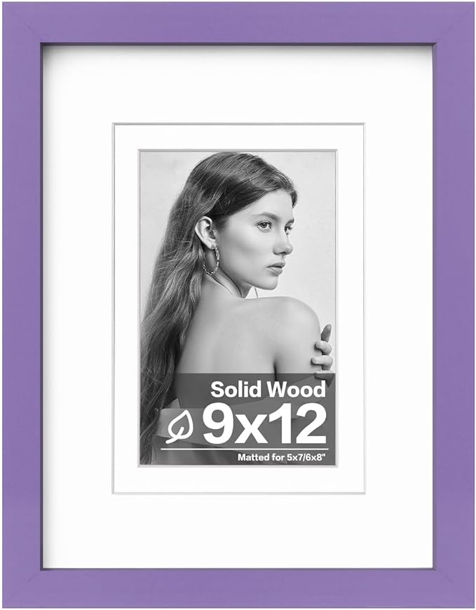 Egofine 9x12 Picture Frame Made of Solid Wood Covered by Plexiglass, Wood Frame for Pictures 5x7/6x8 with Mat or 9x12 without Mat, Tabletop and Wall Mounting Display, Purple