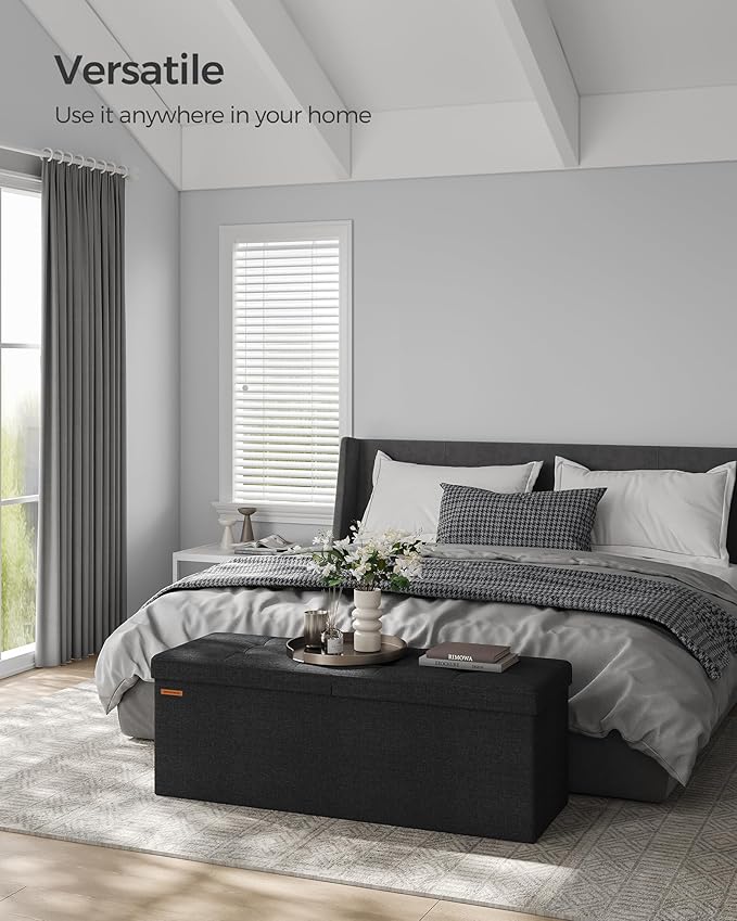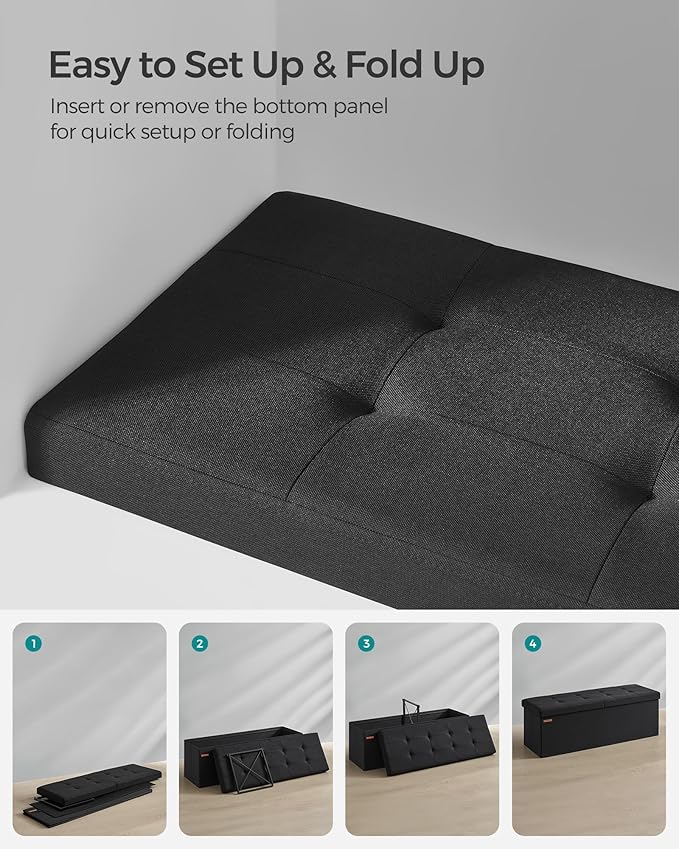 SONGMICS Mazie Collection - 43 Inches Storage Ottoman, Foldable Storage Bench with Flipping Lid, 660 lb Load Capacity, for Entryway, Living Room, Bedroom, Ink Black ULSF076B01