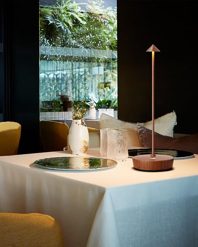 Cordless Table Lamps Rechargeable, 6000mAh Battery Operated LED Desk Lamp Outdoor Waterproof Portable Touch Dimmable Table Light for Patio Restaurant Dining Home Wood Grain