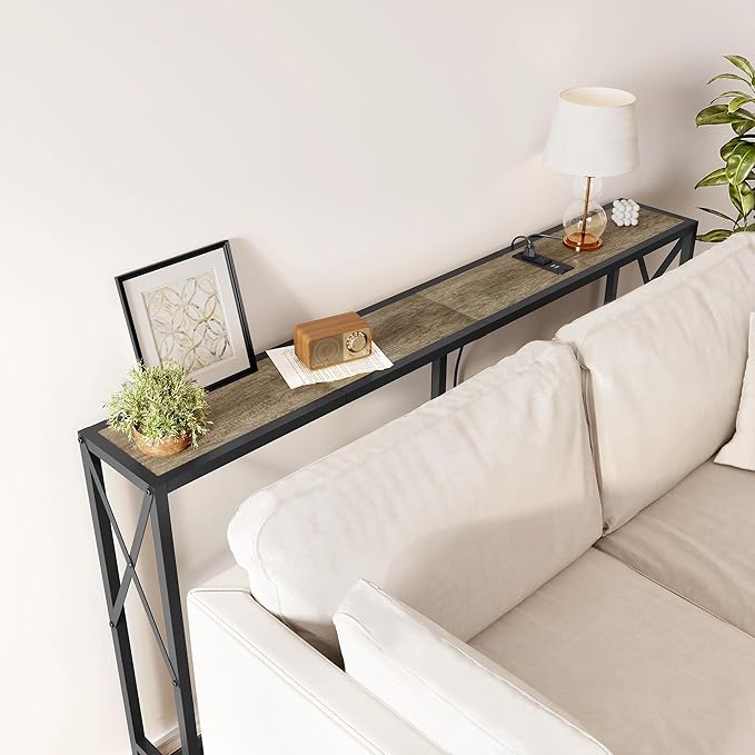 Sofa Table with Oulets and USB Ports, 55.1" Couch Table Behind Sofa, Industrial Long Skinny Stand for Hallway, Living Room, Bedroom, 6.5 Feet Power Cord