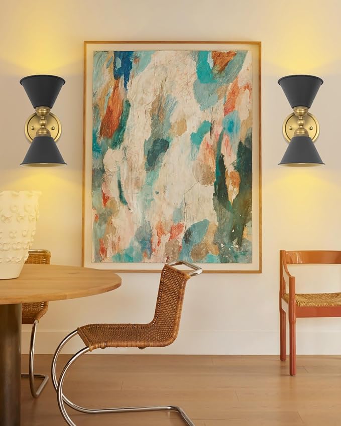 HEQIQEH Set of 2 Vintage Battery Operated 2-Lights Wall Sconces, Indoor Up and Down Wall Light Fixtures with Remote Control, Dimmable Cordless Wall Lamps for Hallway, Living Room, Stairs