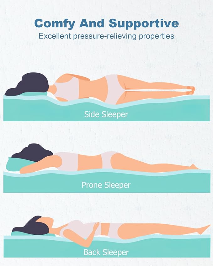 - [HEALTHIER SLEEP]-Our selected premium memory foam offers the even contouring, pressure relief, and excellent motion isolation, and breathable rayon fabric from bamboo gives a cooling and comfortable feel while you sleep