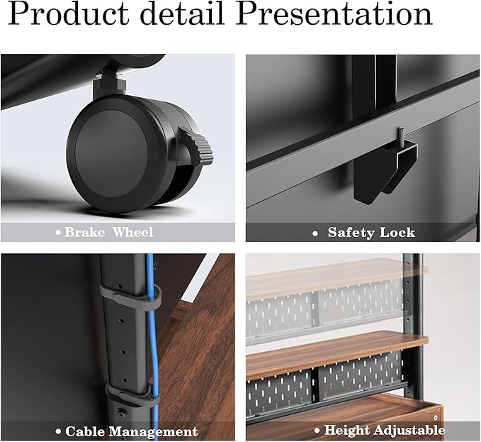 - 【High Weight Capacity of 176lbs & Stability】Fitueyes 100 inch mobile TV stand is designed with dual-column steel, thickened heavy duty MDF wooden shelf, it steadily support your large TV even up to 176 lbs, not only beautiful but stable enough.The safety lock on the mount also attaches your TV securely to the TV stand. Our TV stand has passed internal tests with up to twice its maximum load capacity, ensuring reliable and safe support for your large TV.