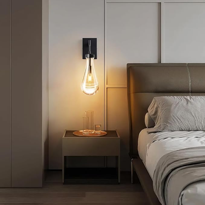 - 【Unique Design】:Raindrop shaped clear glass shade blends modern and natural elements. Whether you are looking for a contemporary decor or a vintage farmhouse style, this wall sconce is the perfect match.