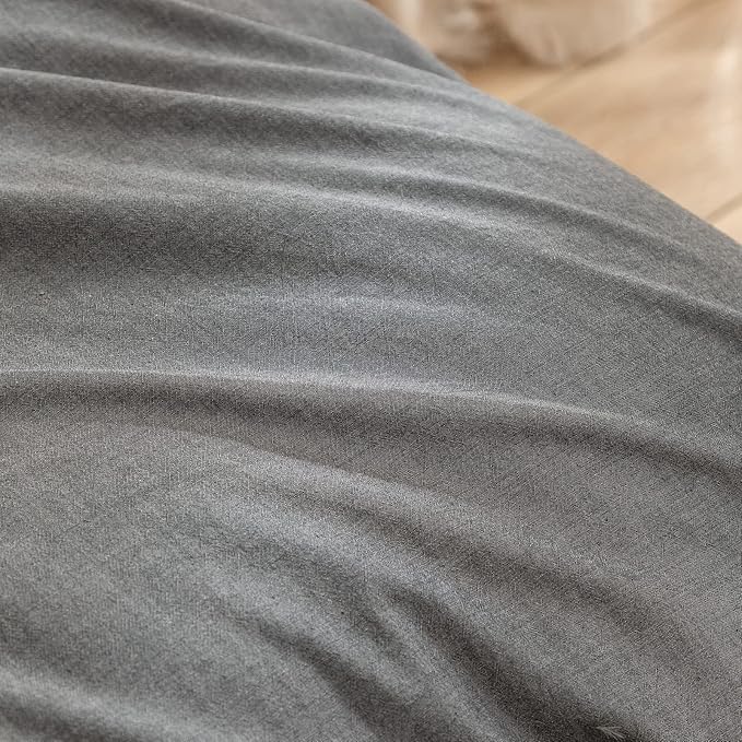 BESTOUCH Duvet Cover Set 100% Washed Cotton Linen Feel Super Soft Comfortable Chic Lightweight 3 PCs Home Bedding Set Solid Dark Grey Oversized King
