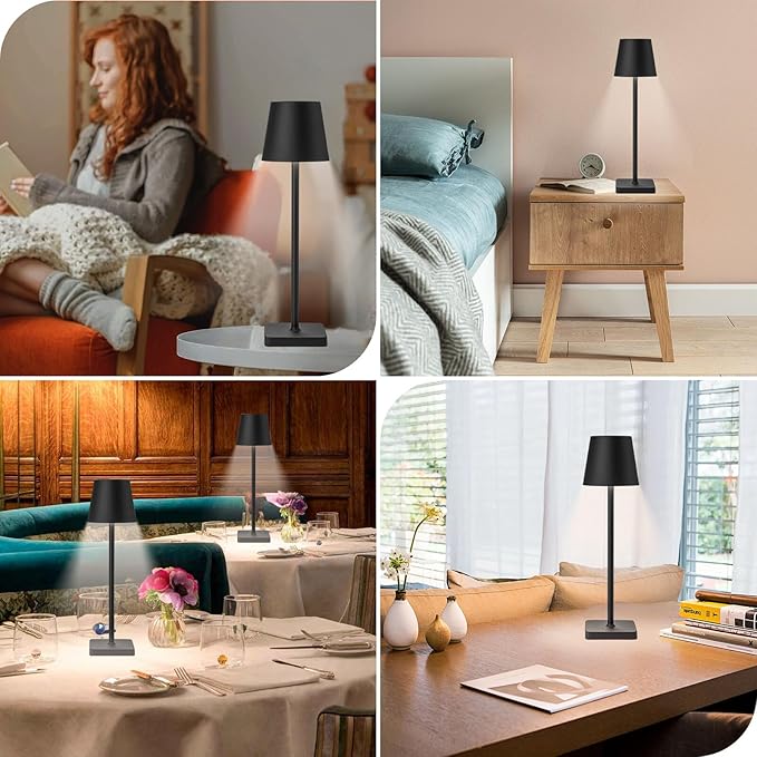- Minimalist Design Table Lamp: Crafted from powder-coated aluminum with a sleek, simple design, this lamp is built to withstand the test of time both indoors and outdoors. It features a built-in LED wick that provides bright, non-blinding 360-degree illumination. The non-slip silicone base ensures it stays securely in place, even on breezy nights