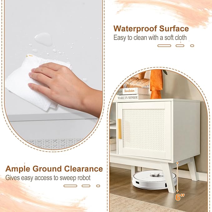 - Stable Structure & Easy Maintenance: The TV stand is built to last, made of quality MDF with PE rattan doors and dedicated hardware. Its 6 support legs provide excellent sturdiness and stability. The painted waterproof surface is easy to clean with a soft cloth. Besides, the ample ground clearance gives easy access to sweep robot.