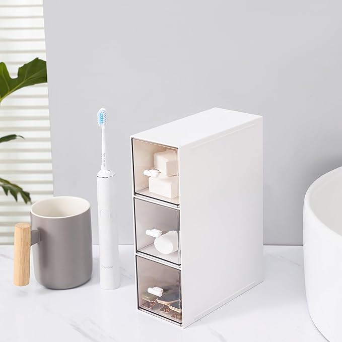 - Organizing made simple: Our desktop organizer provides the perfect solution for organizing office supplies and cosmetics. With its three-drawer design, you can categorize and store all your small items, and the transparent drawers make it easy to find what you need, keeping everything in order.