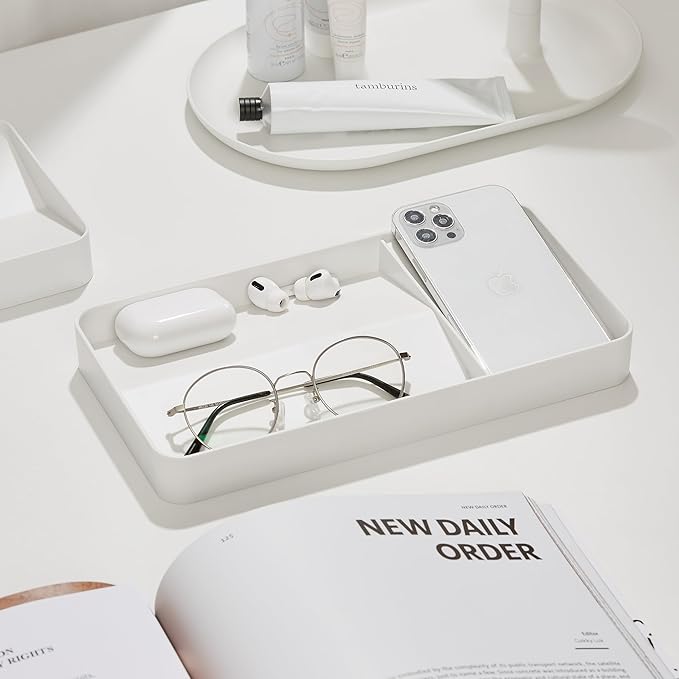 - PRODUCT SIZE - Measuring W10.5 x D5.5 x H1.2 inches, our desk organizer tray is perfectly sized. Elevate your organization game with this sleek functional solution.