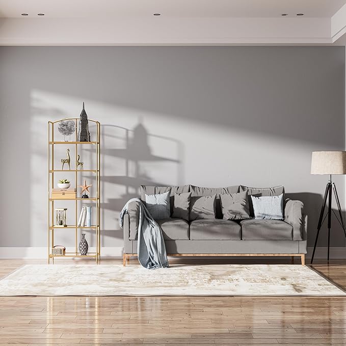 Crofy No Assembly Folding Bookshelf for Living Room, 5 Tier Gold Collapsible Book Shelf for Home Office, Portable Bookcase Storage Organizer