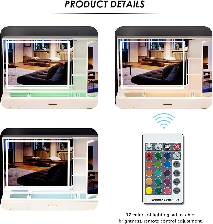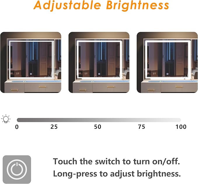 - ✅【Extra large mirror】Vanity Mirror size: 40''L * 25.6''H, the oversized mirror can provide an ultra-comprehensive field of vision, showing all angles perfectly. With a narrow bezel design, the oversized mirror provides a fuller view and perfect presentation of all angles. A better illumination strip is used instead of bulbs, and the strip is infinitely dimmable.