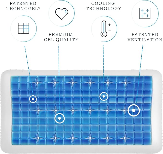 - 🌡️ 4-Way Cooling Technology – Featuring Technogel’s patented gel material, this pillow pulls heat away from your head and neck, while airflow channels and a cooling cover ensure maximum heat dissipation for a cooler, more refreshing sleep.