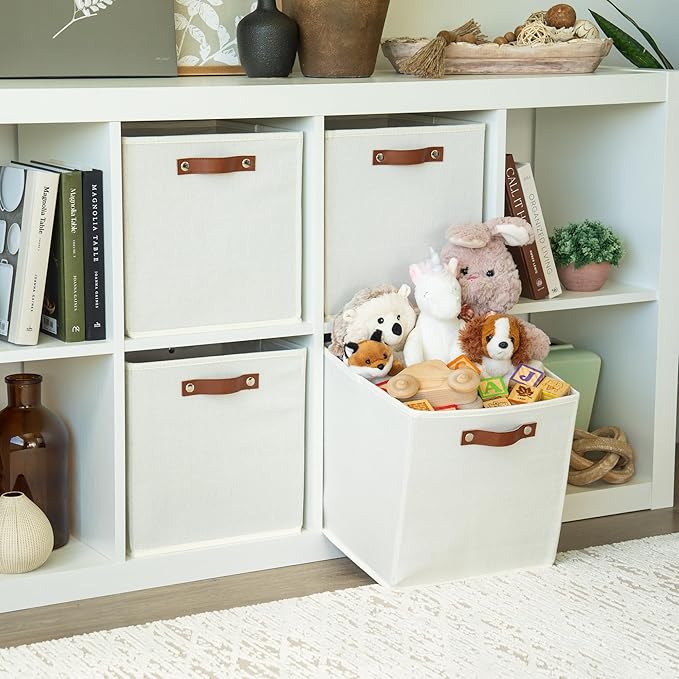 OrganiHaus White 12x12 Fabric Storage Bins - Set of 4, Cube Fabric Organizer Bins with Vegan Handles, Kallax Storage Cubes, Cubbies Organizer Boxes, 12Inch Cubic Baskets for Shelves