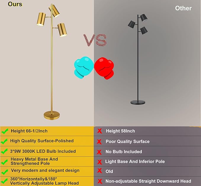 - 【High Quality Color and Elegant Design】Ldeco Floor Lamps are designed by hardware plating gold color,which make our lamps looks shinny ,glossy,elegant and high value products,each detail we polished and improved, gold lampbody color is very sutiable with the bulb's warm white color,it is a amazing lamps for the bedroom, living room, office, kids room, coffee table and study room. Meanwhile, it is a fantastic gift for families and friends.