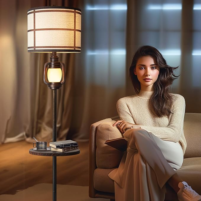 - BROWN METAL TRAY : The adding of the tray to the lamp makes the lamp not just a lighting source or decor but also a useful furniture which can be used as a nightstand or end table. Giving you space to put any items such as cups, phones, etc...