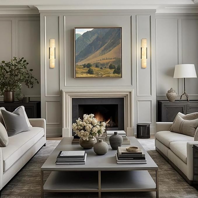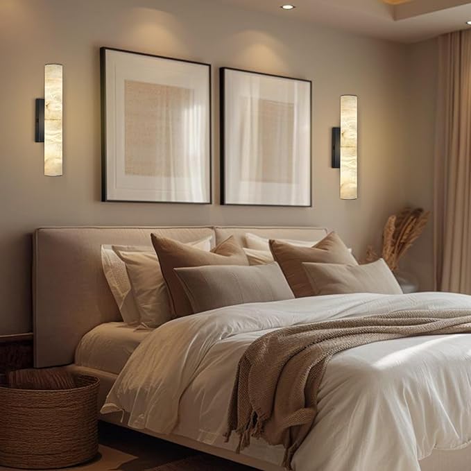 - 【Unique Work Of Art】Each Alabaster sconce is crafted with natural marble, which has a unique natural texture. The warm light inside the marble sconce shines through the natural stone to provide soft light effect. Add sophistication and luxury to your home living with Sucelating stone wall sconce.