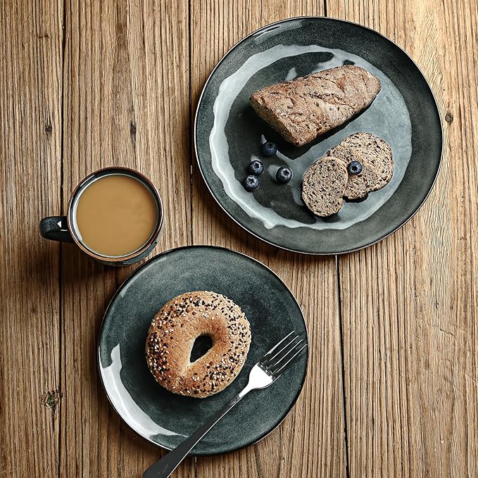 Famiware Dinnerware Sets for 4, Ocean Round 12-Piece Kitchen Plates and Bowls Sets, Reactive Glaze, Microwave and Dishwasher Safe, Scratch Resistant, Deep Forest
