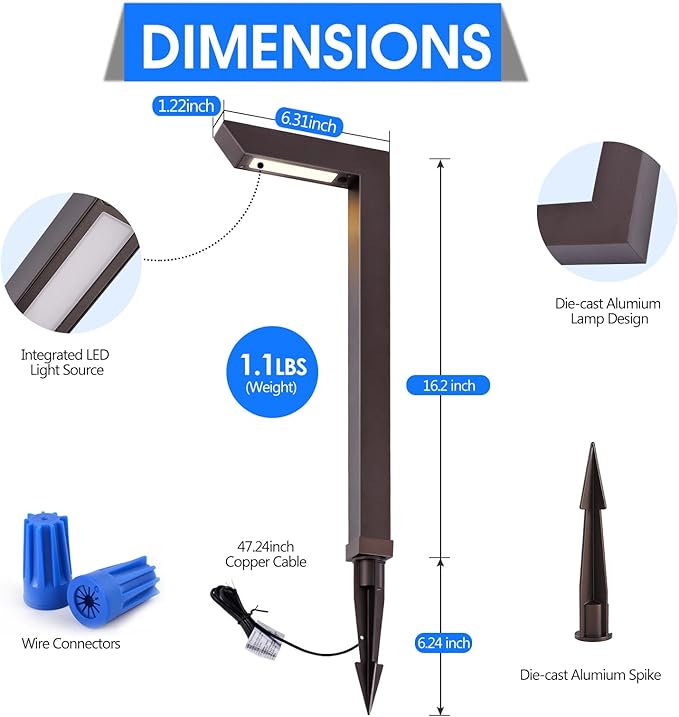 - 3 Color Temperature Selectable: Modern style path light combines decoration and practicality, can be adjusted according to seasonal changes in different light colors, 3000K/4000K/5000K integrated in a button without disassembling the lamp