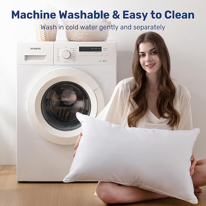 - EASY TO CLEAN: The pillow set is machine washable which can save you more time and effort. Machine wash cold separately gentle cycle, sun-dry or tumble dry low. Fluff the hotel pillow frequently can keep it in good shape during continuous use.