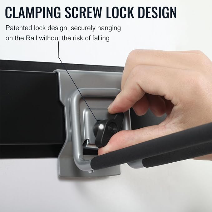 - ADJUSTABLE VERSATILE STORAGE: With a clamping screw, the hooks adjust along the wall track, accommodating various tool sizes. This garage storage system is ideal for organizing shovels, rakes, brooms, and more, making it a perfect yard tool organizer for garage.