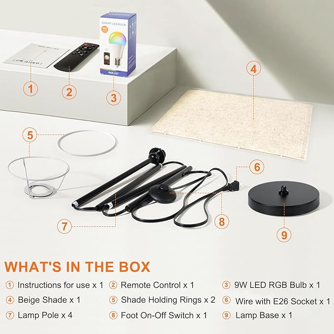 - 【Easy installation 】The tall floor lamp is easy to install—no extra tools are needed. Just follow the instructions to screw in all the parts, and you'll be ready to enjoy customizable lighting! Ideal for gifts.