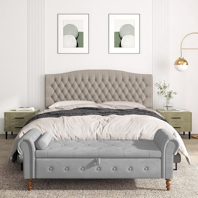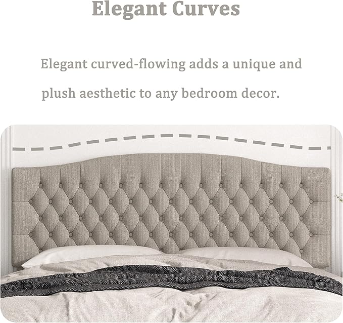 - MODERN DESIGN: This linen King headboard with hand-pulled tufted button and united style legs, and fine details such as generous texture and curved-flowing elegant top adds a unique and plush aesthetic to any bedroom decor