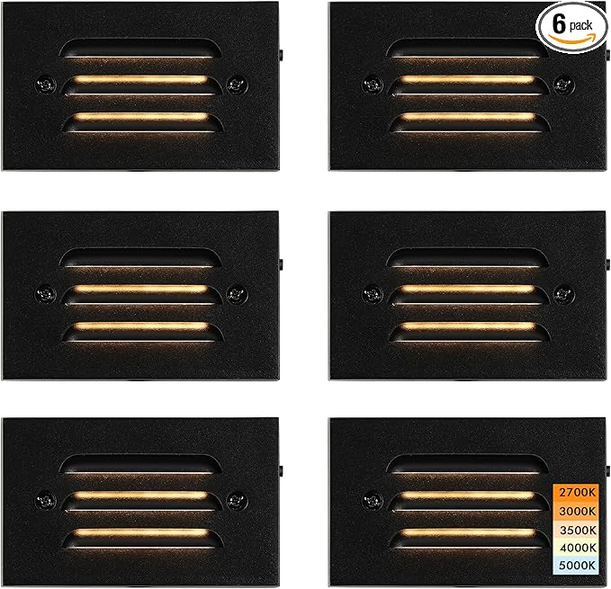 - ✅Convenient 6-Pack: This pack includes 6 step lights, providing you with multiple lights to cover your entire outdoor stairway. Whether for residential or commercial use, the 6-pack ensures consistent and uniform lighting, creating an inviting and safe atmosphere.
