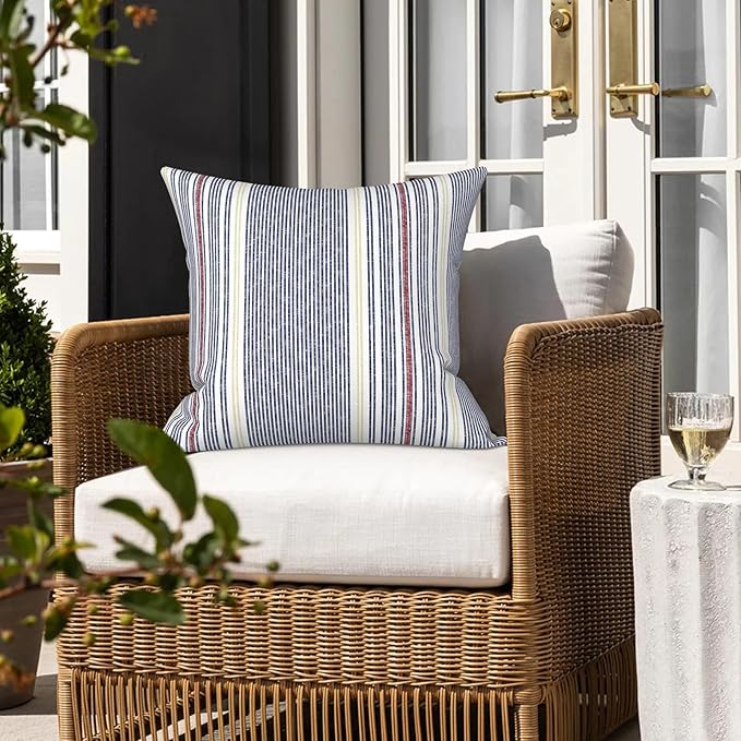 LVTXIII Outdoor/Indoor Throw Pillows, Decorative Throw Pillows with Inserts, 18"x18" Square Pillows for Bed, Couch, Sofa and Patio Furniture, Set of 2, Stripe Denim Blue