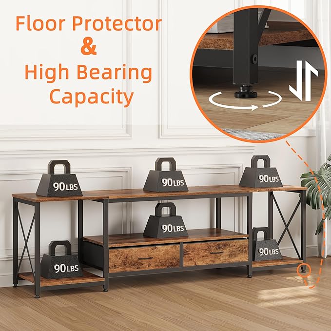TV Stand with Fabric Drawers - Entertainment Center and Industrial Console Table with Open Storage Shelves for Living Room, Bedroom - 71.5" Rustic Brown