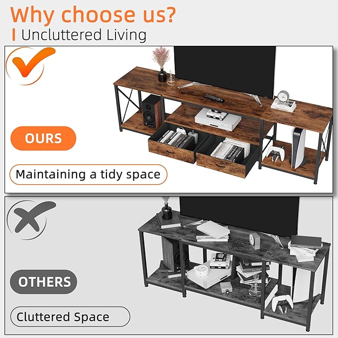 - 【Convenient 2-drawer storage】Featuring two spacious drawers, this TV stand offers a practical solution for storing and organizing various items, keeping them easily accessible yet safely out of reach of children, ensuring a clutter-free and child-friendly environment.