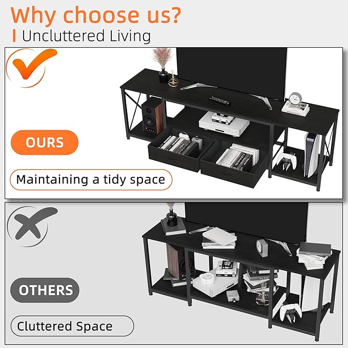 - 【Ample storage space for all your needs】This TV stand provides generous storage capacity, allowing you to neatly organize and store your media devices, DVDs, gaming consoles, and other accessories. Enjoy a clutter-free entertainment area where everything is within reach and well-organized.