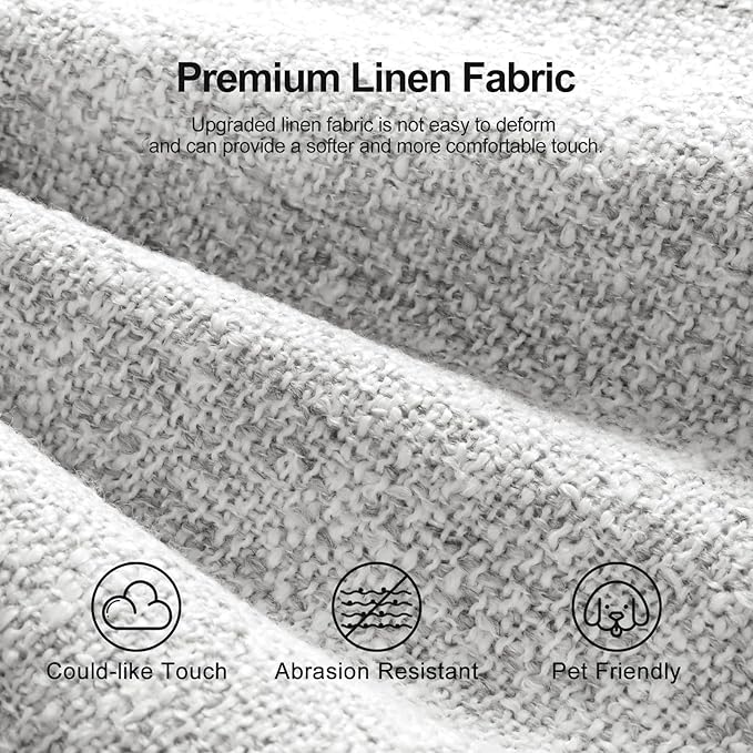 - PREMIUM MATERIALS: This sectional sofa is crafted with premium linen fabric,it is soft and comfortable enough to touch,skin-friendly, durable and not easy to pilling.If your pet likes to claw the sofa, please don’t worry, the fabric is sturdy enough,so won't leave any marks.